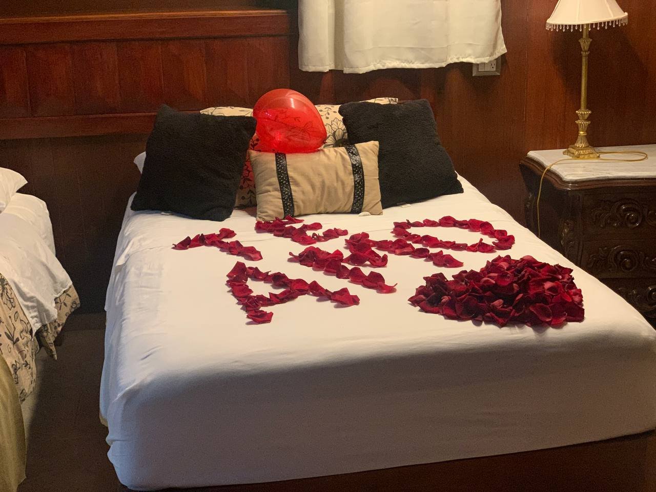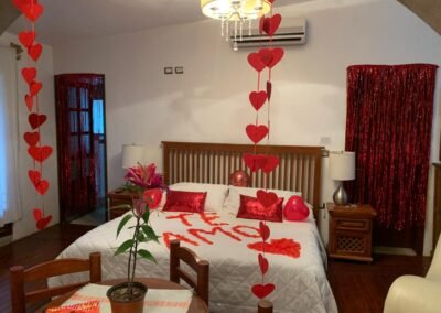 Nuestra decoración romántica está diseñada para crear un ambiente íntimo y especial. Desde el momento en que entras, sentirás la calidez y el amor en cada rincón. Ideal para aniversarios, lunas de miel o simplemente para sorprender a esa persona especial. No olvides dejar tus comentarios o solicitudes especiales para personalizar aún más tu experiencia.